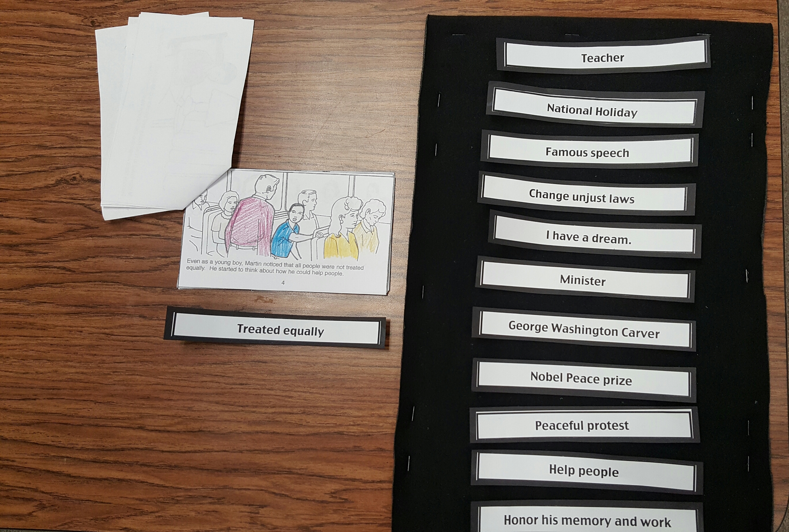 For the topic of Martin Luther King Jr., I like to read several books about him and his story with the students. We ended up watching a short video clip followed by making a mini book.