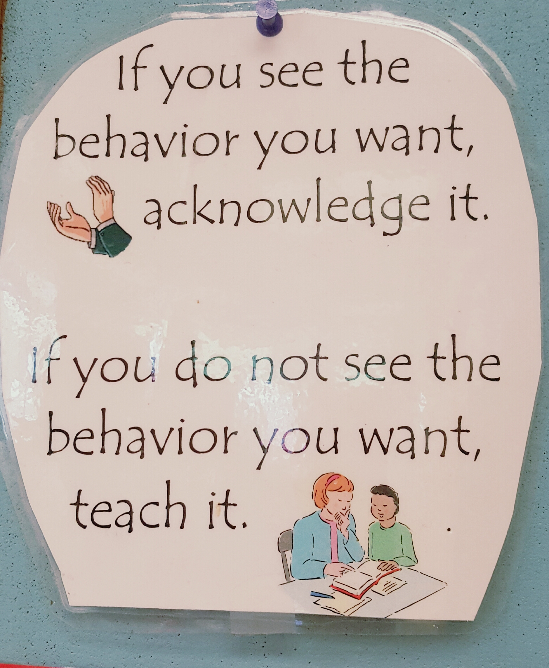 If you see the behavior you want, acknowledge it. If you do not see the behavior you want, teach it.