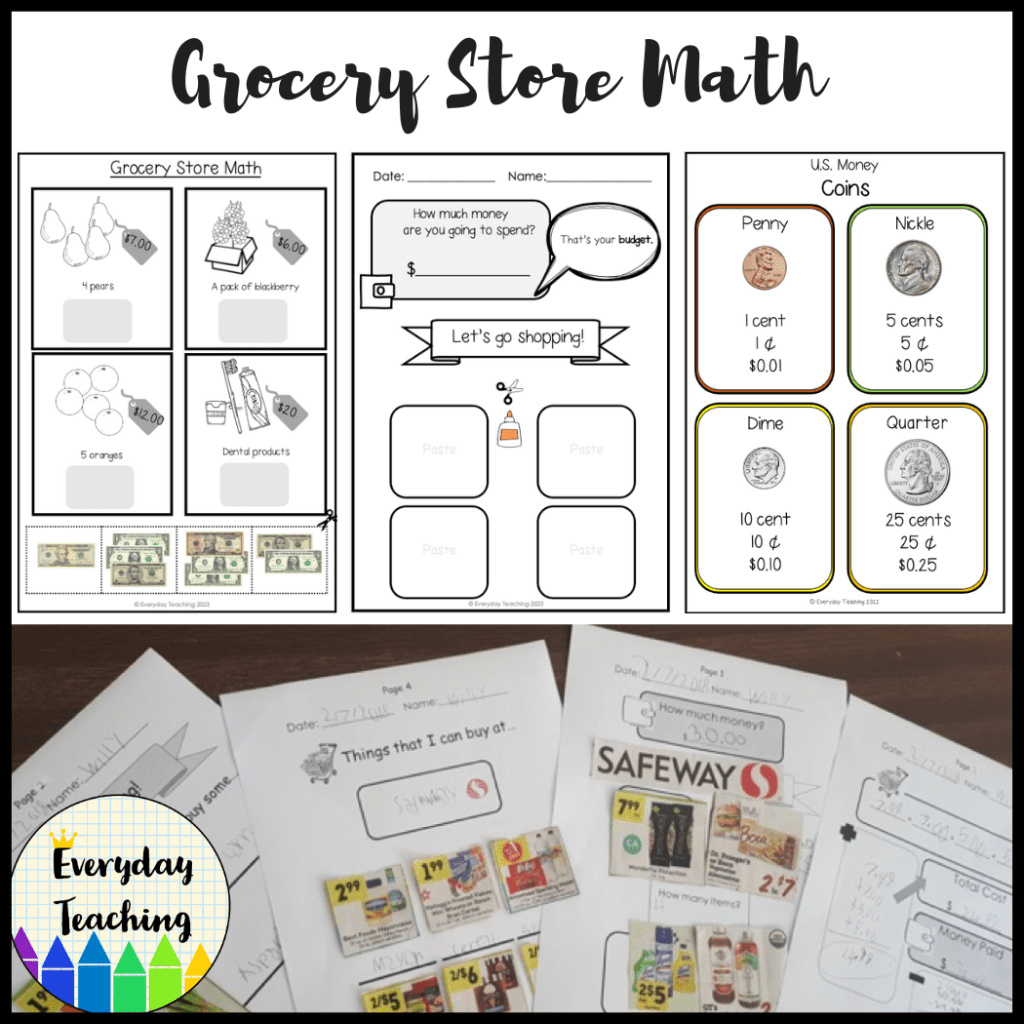 I have created a set of grocery store math worksheets to tailor my students’ needs and skill levels.