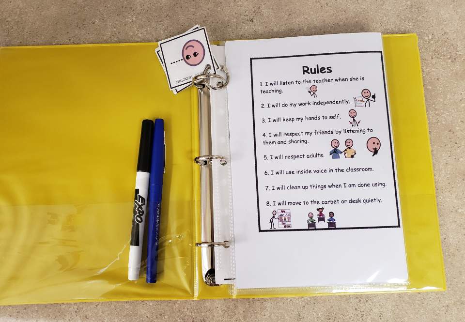 His token board is also part of this binder- his aide doesn’t have to look for it everywhere.