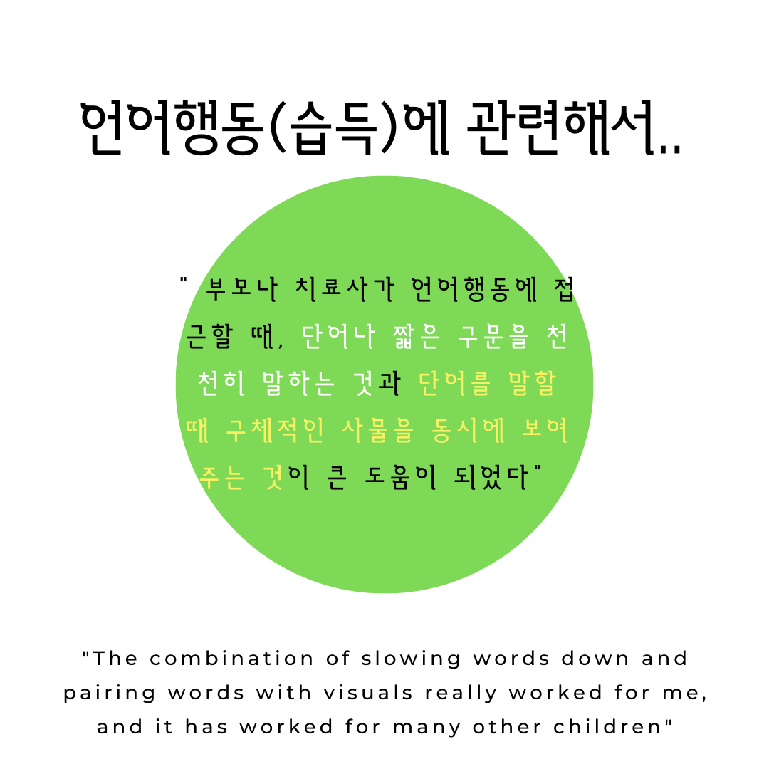 Turn Autism Around was forwarded by Dr. Temple Grandin who also suggested this matter in her own books as well. Dr. Grandin mentioned slowing down the word when speaking to those kids- and pairing them with actual objects or pictures really helps them pick up the language.
