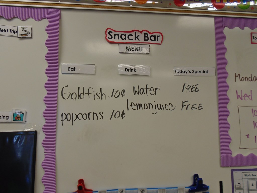 Daily snack activity is a great time to teach many different skills since most of my students are highly motivated and engaged around food in the middle school autism program.